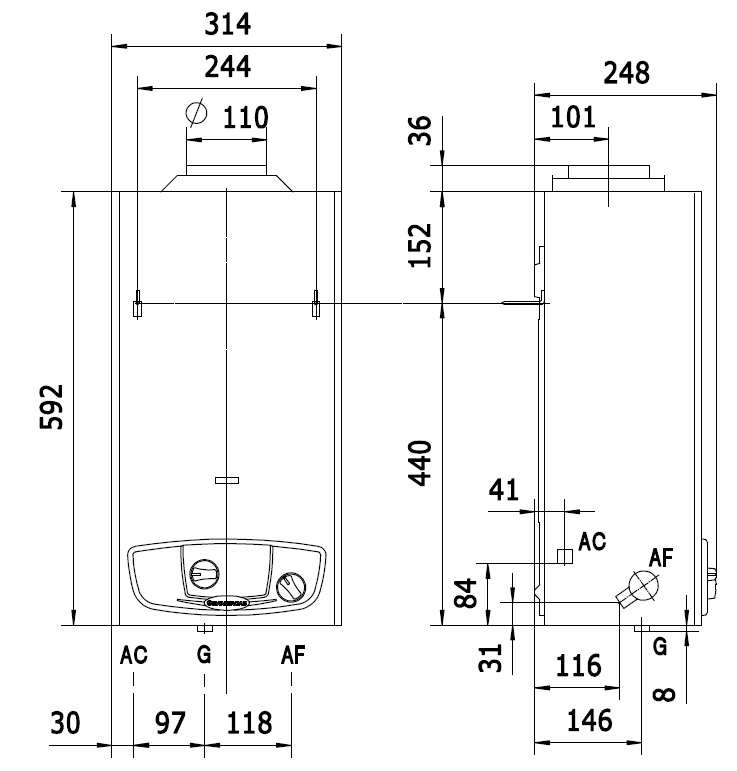 Nyílt égésterű átfolyós vízmelegítő